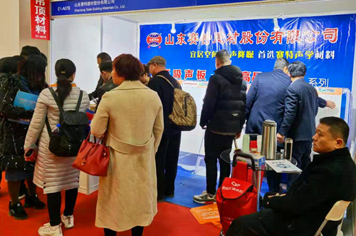 山東賽特建材股份有限公司作為會員單位,公司派出業務骨干參加展會,成功推廣了新產品——賽特高級玻纖吸音板,取得了較好的效果,現場咨詢火爆,與多家單位達成合作意向。會展期間,公司與四川省宜賓市龍粵木業有限公司簽訂訂購協議,首批訂單2萬平方米玻纖吸音板,供貨地點四川省宜賓市。